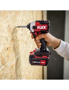 Potente avvitatore a percussione FLEX da 18V con motore brushless ad alto rendimento e durata superiore. EMS protegge la macchina, modalità autofilettante evita spanamento viti corte/lunghe. Meccanismo espulsione bit per cambio rapido, testa compatta per spazi angusti, alti giri e coppia per efficienza massima. Speed Command con 3 velocità regolabili, attacco esagonale 1/4", freno rapido, rotazione bi-direzionale, corpo in ghisa alluminio, impugnatura antiscivolo, LED illuminante e batteria. Inclusi clip cintura e portabit. Compatibile con batterie FLEX 18V non incluse ma richiedibili prima dell'ordine.