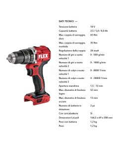 Flex Trapano avvitatore a percussione 18 V Compact 2 velocità Brushless Completo Flex PD 2G 18-EC LD 55 TC