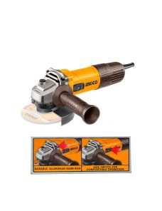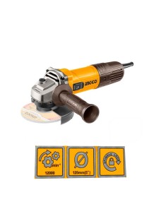 Ingco AG90028E smerigliatrice angolare professionale 900W da 125 mm, velocità 12.000 giri/min, mandrino M14 e peso ultraleggero 2,3 kg della serie Industrial. Interruttore di sicurezza EU, maniglia ausiliaria inclusa per controllo totale in cantiere, officina e manutenzione. Perfetta per tagli e sbavi su metallo e materiali da costruzione