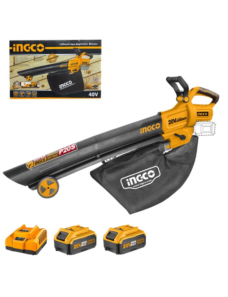 Ingco CABLI2003 è un soffiatore/aspiratore a batteria al litio da 40V (20V+20V). Inclusi in questa offerta 2 batterie 20 V 4 ah e caricabatterie rapido 20 V 4 ah. Offre una velocità variabile da 6000 a 11500 giri/min, con un volume d'aria massimo di 10 m³/min e una velocità dell'aria fino a 190 km/h. Include un sacchetto per la polvere, ideale per lavori di pulizia all'aperto con controllo preciso del flusso d'aria.