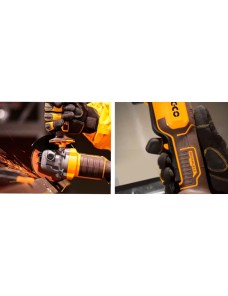 Smerigliatrice angolare a batteria Ingco CAGLI2111561E con motore brushless 20 V da 1000 W, diametro disco 115 mm e velocità regolabile 3000–8000 giri/min, pensata per taglio e sbavo metallo con massima libertà di movimento grazie all'alimentazione a batteria; il pratico interruttore di sicurezza a grilletto aumenta il controllo in uso, mentre il set completo con 10 dischi abrasivi per metallo, batteria 4,0 Ah, caricabatterie 220–240 V e valigetta la rende subito pronta al lavoro per interventi rapidi in officina, in cantiere e per manutenzioni domestiche.