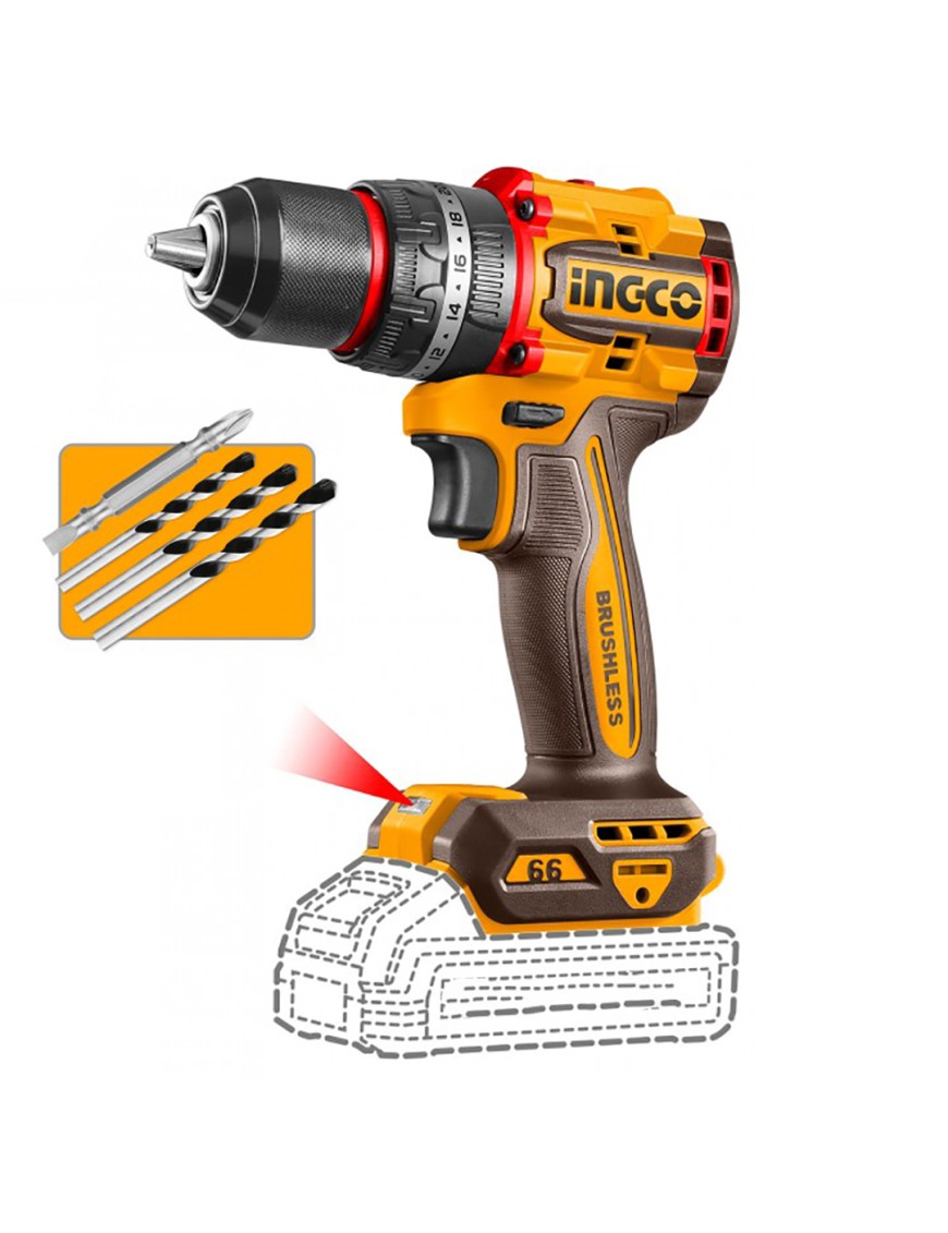 Perfetto per chi cerca un trapano a percussione brushless 66 Nm affidabile e leggero, l'Ingco CIDLI206681 unisce potenza, ergonomia e tecnologia avanzata. Nel nostro negozio trovi accessori di alimentazione, batterie 20V, caricabatterie, punte e inserti di qualità per completare il tuo arsenale di strumenti professionali!