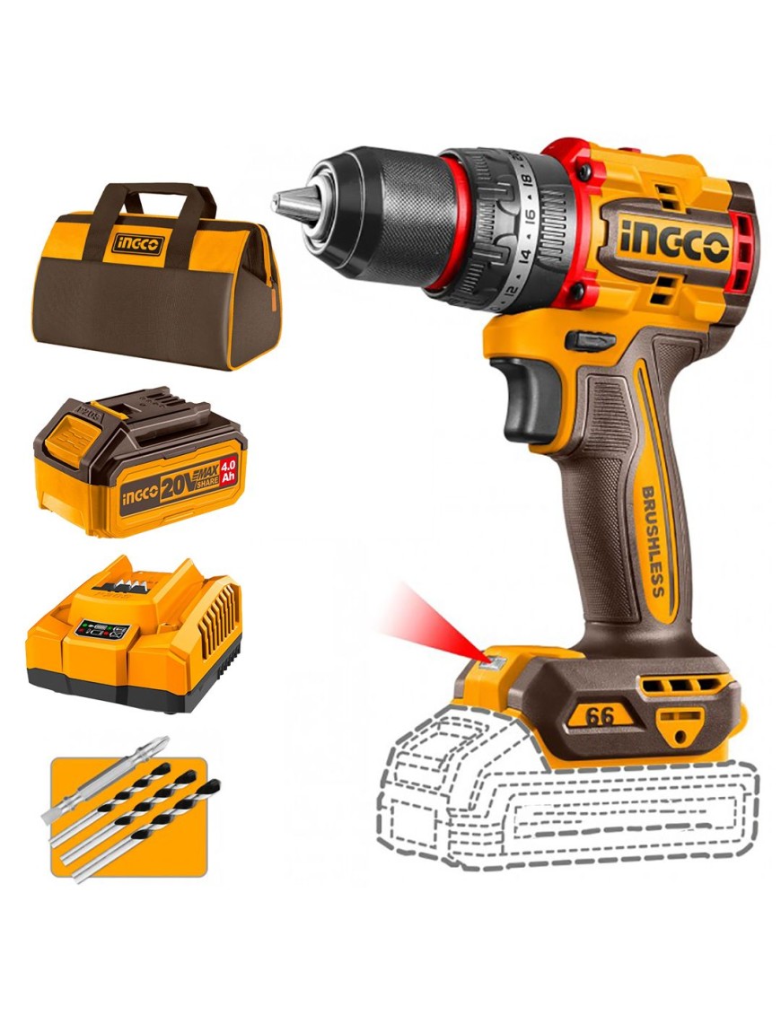 Perfetto per chi cerca un trapano a percussione brushless 66 Nm affidabile e leggero, l'Ingco CIDLI206681 unisce potenza, ergonomia e tecnologia avanzata. Nel nostro negozio trovi accessori di alimentazione, batterie 20V, caricabatterie, punte e inserti di qualità per completare il tuo arsenale di strumenti professionali!