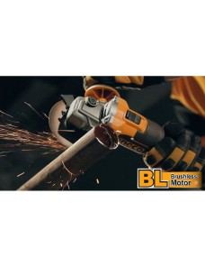 Smerigliatrice CAGLI27153E: Motore brushless, velocità 3000/6000/9000 giri/min, disco 115 mm, mandrino M14.