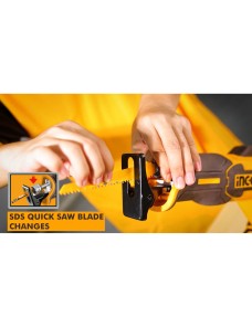 Realizzato con corpo macchina nudo (batteria e caricabatterie venduti separatamente), è compatibile con tutto il sistema batterie INGCO 20V, garantendo flessibilità e risparmio per chi possiede già l'ecosistema. Il design ergonomico con impugnatura soft-grip antiscivolo riduce la fatica durante l'uso prolungato, mentre il sistema di sostituzione lame tool-free (senza attrezzi) velocizza il cambio e minimizza i tempi di fermo. La lama oscillante permette tagli diritti, curvi o demolitivi in spazi ristretti, perfetto per carpenteria, ristrutturazioni, installazioni idrauliche o lavori in cantiere.
