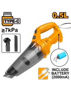 Aspirapolvere senza fili 12 V Usb C Auto Casa Portatile Aspira briciole Ingco CVLI2026