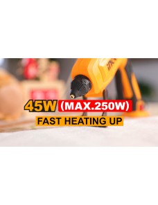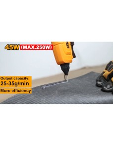 Ingco GG408 è una pistola termocollante da 45W (250 W) (220-240V) con 8 stick inclusi, ideale per incollaggi rapidi in fai-da-te e hobbistica.? Riscalda in 3-5 minuti, eroga 20-30 g/min con stick da 11,2 mm x 150 mm, per una colla calda fluida e precisa su legno, plastica e altro.
