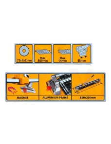 Progettata per un utilizzo intensivo, la Ingco HTC04601 offre una lunghezza massima di taglio di 600 mm e uno spessore massimo di 14 mm, permettendo di lavorare con facilità su diversi formati di piastrelle. La lama cava da 22x6x2 mm assicura tagli netti e precisi, mentre la base in acciaio rinforzato da 2 mm con dimensioni 820x200 mm garantisce massima stabilità durante l'utilizzo.