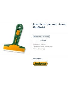 Raschietto per vetro Jadever JDGS1618 lungo 102 mm, studiato per rimuovere con precisione residui, colla e incrostazioni da vetri e superfici lisce. La lama da 18 x 100 mm offre un'ampia zona di lavoro mantenendo un buon controllo della pressione sul piano. Nella confezione sono incluse 3 lame di ricambio, così puoi sostituirle quando si usurano e continuare a lavorare in modo efficace e pulito.