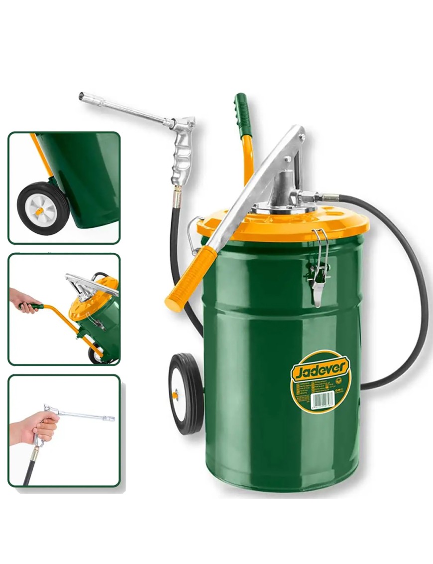 L'ingrassatore manuale Ingco JDHY2A25 è uno strumento robusto e pratico per la lubrificazione professionale, ideale per officine e ambienti industriali. Capacità di 25 kg, serbatoio in acciaio con diametro di 295 mm e altezza di 440 mm. Dispone di tubo flessibile lungo 1500 mm e lavora con una pressione fino a 3000 psi. È dotato di impugnatura in gomma ergonomica, pistola con presa confortevole e maniglia push-pull per un utilizzo agevole. Le due ruote da 150 x 33 mm rendono il trasporto semplice e stabile.