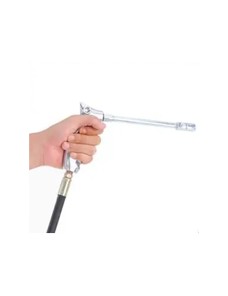Il dispositivo lavora con una pressione fino a 3000 psi, assicurando un'erogazione potente ed efficace del lubrificante. È equipaggiato con un tubo flessibile lungo 1500 mm, che consente di raggiungere anche i punti meno accessibili con precisione e comodità. La pistola con impugnatura ergonomica offre un utilizzo confortevole, riducendo l'affaticamento dell'operatore anche in caso di lavori prolungati.