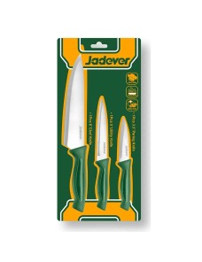 Jadever JDKK1K31 Set 3 Coltelli da Cucina – Set pratico e versatile composto da 1 coltello da chef da 8'', 1 coltello multiuso da 5'' e 1 coltello spelucchino da 3,5''. Le lame in acciaio inossidabile 3Cr14 offrono un ottimo equilibrio tra affilatura e resistenza alla corrosione, mentre i manici in PP (polipropilene) garantiscono una presa salda, ergonomica e leggera.