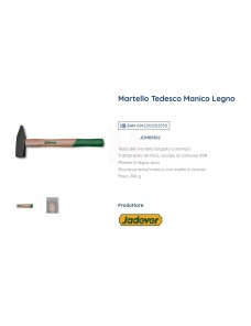 Martello tedesco Jadever JDMB1302 con testa da 200 g forgiata in acciaio al carbonio 45# e trattata termicamente per garantire estrema durezza e durata. Manico robusto in legno duro, fissato con anello di sicurezza in acciaio per prevenire distacchi durante l'uso intensivo. Perfetto per colpi precisi in carpenteria, officina e piccoli cantieri domestici