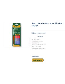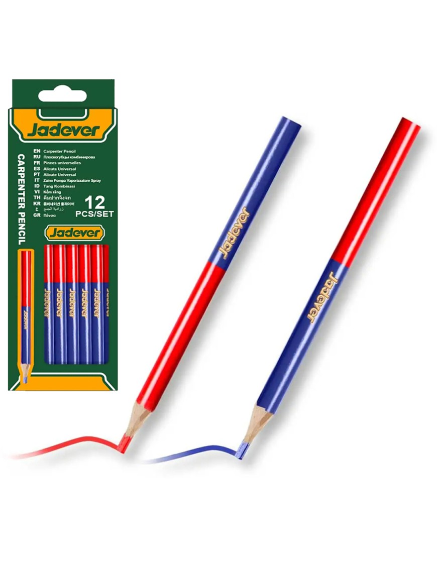 Scopri il Set da 12 Matite da Muratore Jadever JDMQ2512 Blu/Red 176mm, l'essenziale per carpentieri, muratori e artigiani professionisti che necessitano di matite da carpentiere resistenti e precise.