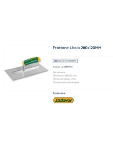 Il frattone liscio Jadever JDPE1912, con dimensioni 280x120 mm, è uno strumento essenziale per lisciare e stendere intonaci, garantendo superfici uniformi e ben rifinite. Il manico ergonomico assicura una presa comoda e sicura durante l'utilizzo.