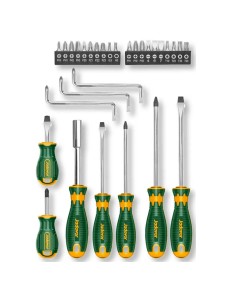 Il set comprende un cacciavite magnetico da 1/4" x 100 mm che facilita il lavoro con viti piccole e difficili da maneggiare, oltre a 20 punte intercambiabili da 4 x 25 mm nelle tipologie SL, PH, PZ, T e H, adatte a diverse applicazioni: da lavori di precisione elettronica fino a interventi su mobili e apparecchiature domestiche.