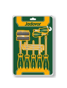 Set di 30 cacciaviti Jadever in acciaio CR-V, ideale per lavori di precisione e fai-da-te. Include un cacciavite magnetico, 20 punte intercambiabili, vari cacciaviti a taglio e a croce, oltre a tre modelli a doppia testa a Z per la massima versatilità e praticità d'uso.