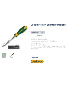 Il Jadever JDSS1612 è un cacciavite versatile con bit intercambiabili: porta-punte magnetico da 1/4" x 100 mm e 11 punte CR-V da 25 mm (SL4, SL5, SL6, SL7, PH0, PH1, PH2 x2, PH3, PZ1, PZ2). Perfetto per avvitature precise in riparazioni domestiche, montaggi mobili o elettronica fai-da-te, con magnete che trattiene le viti. Qualità pro Jadever a prezzo accessibile per il tuo assortimento