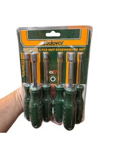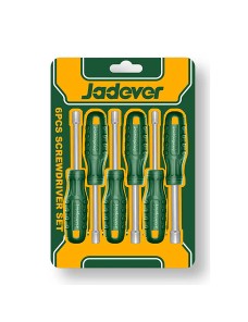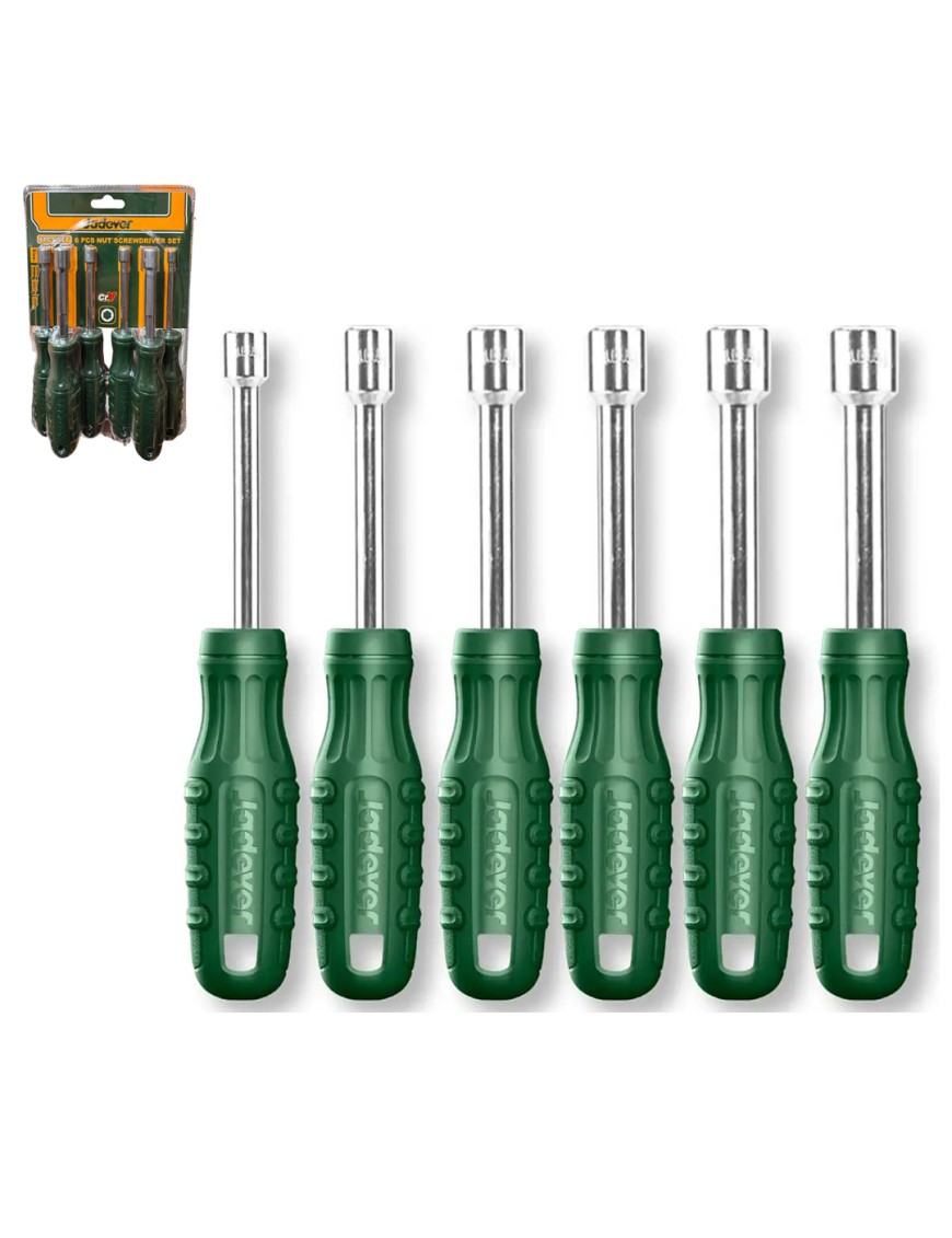 Il set Jadever JDSS24T6 comprende 6 cacciaviti per dadi in acciaio CRV con gambo tondo e testa esagonale. Dotati di impugnatura innovativa per una presa comoda, nelle misure 5, 6, 7, 8, 9 e 10 mm, con lunghezza di 185 mm.