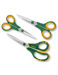 Il set include una forbice grande da 215 mm (8,5''), una di dimensione media da 160 mm (6,5'') e una compatta da 140 mm (5,5''), offrendo la possibilità di scegliere lo strumento più adatto in base all'esigenza specifica. La varietà delle lunghezze rende queste forbici particolarmente pratiche per lavori di sartoria, attività scolastiche, lavori creativi e piccoli lavori di fai da te.