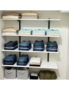 Il sistema di montaggio si basa su 2 cremagliere in acciaio verniciato nero da 1 metri e 8 reggimensole, anch'esse in acciaio verniciato nero, lunghe 17 cm, robuste e facili da installare. Grazie a questa struttura, le mensole risultano stabili e capaci di sostenere un buon carico, ideali per libri, oggetti decorativi o materiali da lavoro.