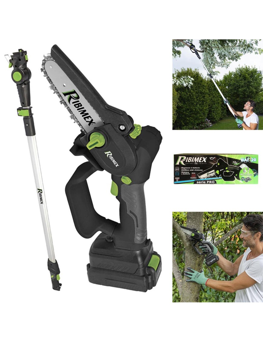 Ribimex PRBAT20/ELAGASTMAN1 Motosega da pota a batteria 20 V mini elettrosega potatura con asta telescopica