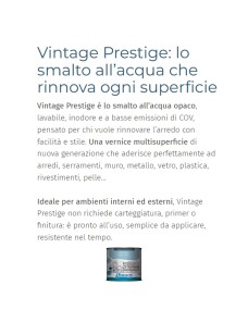 Ideale per ambienti interni ed esterni, Vintage Prestige non richiede carteggiatura, primer o finitura: è pronto all'uso, semplice da applicare, resistente nel tempo.