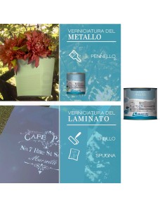 Rio Verde Vintage Prestige è lo smalto all'acqua opaco e lavabile che rinnova mobili e superfici senza bisogno di carteggiatura, primer o finitura. Inodore, a basse emissioni di COV e certificato A+, garantisce ottima copertura sin dalla prima mano e un effetto materico elegante. Adatto a legno, muro, metallo, vetro, plastica e pelle, offre infinite combinazioni di colore per ogni stile, dallo shabby chic al moderno. Pronto all'uso, resistente e facile da applicare: il modo più semplice per trasformare ogni superficie con creatività e design. Vintege prestige conferisce anche un fantastico effetto lavagna alle superfici rendendole utili per scriverci su con i gessetti.