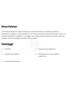 Silicone acetico universale Tytan, antimuffa e resistente a temperature e raggi UV. Ottima adesione su vetro, piastrelle, ceramica e plastiche.