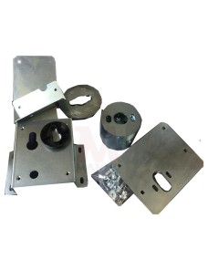 Piastra interna di spessore 2 mm per il fissaggio della serratura elettrica V09 e 2 piastre esterne di spessore 2 mm di cui una dotata di asola per l'eventuale installazione di un doppio cilindro per lo sblocco della serratura dall'esterno (in caso di mancanza di alimentazione).