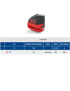 Il corpo del Viro Hammer 135 è progettato per durare nel tempo e resistere agli attacchi dei ladri. Disponibile in due finiture – verniciato arancione o cromato – questo bloccadisco non solo offre una protezione solida, ma anche un design accattivante che si adatta a qualsiasi stile di moto.