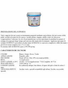 ACRIGUM è dotato inoltre di buone resistenze meccaniche. Reticola con i raggi ultravioletti e non presenta appiccicosità superficiale. Prodotto atossico, inodore e non infiammabile.