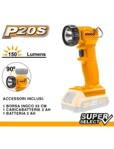 Lampada da lavoro a batteria 20V Luce Led Torcia Portatile completa 2 Ah Ingco