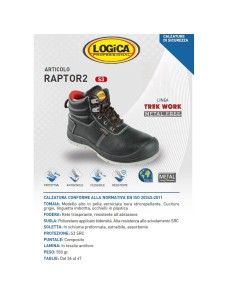 Le Logica Professional Raptor2 S3 SRC sono scarpe antinfortunistiche alte in pelle nera idrorepellente, progettate per offrire la massima sicurezza sul lavoro senza rinunciare al comfort. Grazie alla loro struttura metal free, risultano leggere e ideali per chi lavora in ambienti dove i rilevatori di metallo sono presenti, come aeroporti o industrie elettroniche.