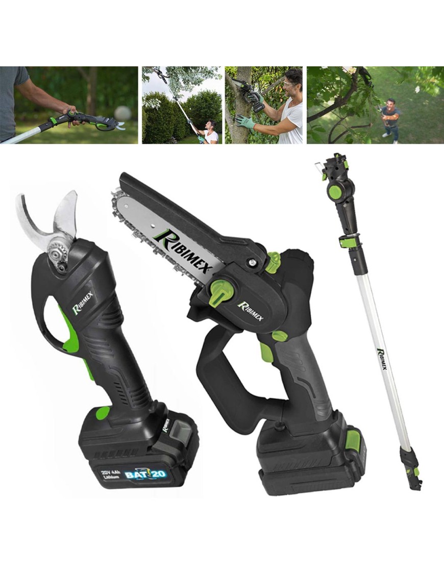 Mini Motosega e Forbice da potatura a batteria 20 V e asta telescopica Set Ribimex