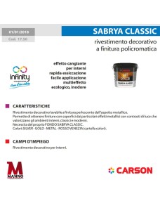 - Effetto Texture: applicare il fondo con rullo a pelo raso e ad essiccazione avvenuta (6-8 ore) applicare il Sabrya Classic con un pennello tipo spalter, senza diluire, lisciando in orizzontale e verticale.
