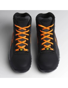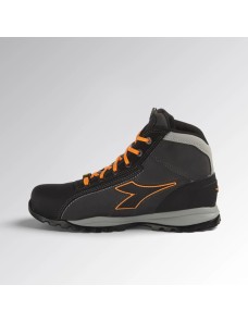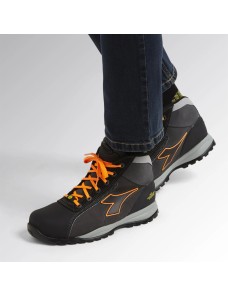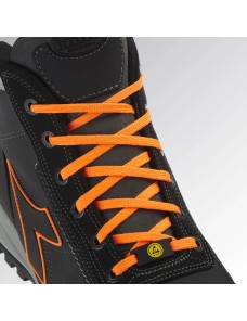 Scarpa antinfortunistica alta Diadora Utility Glove Net Mid Pro S3 HRO SRA ESD colore Grigio asfalto con lacci e particolari Arancio fluo. Dotate di pelle perwanger antigraffio e idrorepellente sono anche scarpe da lavoro traspiranti.