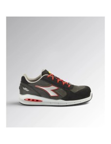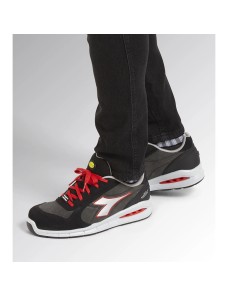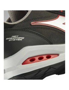 Scarpa antinfortunistica bassa Run Net Aairbox Low S3 Src Diadora Utility colore Grigio asfalto, argento e rosso. Calzatura di sicurezza bassa S3 in crosta scamosciata italiana idrorepellente con sistema di traspirazione laterale Net Breathing System by GEOX.