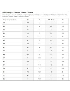 Misura con un righello la distanza tra il lato del foglio appoggiato al muro e il segno tracciato, ripetendo l'operazione per entrambi i piedi, e rileva il valore maggiore (in mm). Trova la tua misura di scarpe confrontando il valore (in mm) con la nostra tabella taglie.