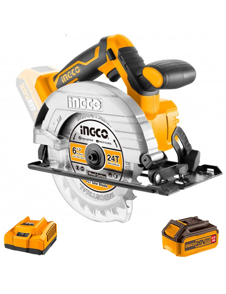 Sega circolare a batteria 20 v Ingco CSLI1651 con 1 lama da 165 mm inclusa. In questa offerta offriamo la sega circolare professionale CSLI1651 completa di batteria 4 ah e caricabatterie 4 ah.
