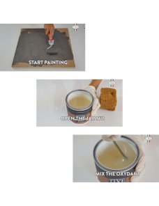L'applicazione dello smalto di base può essere fatta con pennello o rullo; l'applicazione dell'ossidante invece con spugna o pennello. Infine, il protettivo può essere applicato con pennello o rullo. Si raccomanda di non applicare a spruzzo.