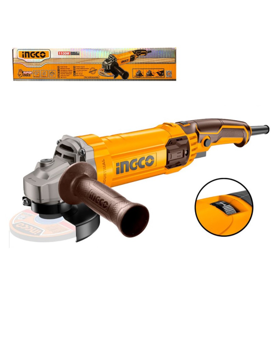 La Smerigliatrice Angolare Ingco AG1100385 da 1100W è perfetta per operazioni di taglio, levigatura e smerigliatura. Con velocità regolabile tra 5000 e 12000 giri/min e disco da 125 mm, garantisce potenza e precisione in ogni applicazione. Include una maniglia laterale per un controllo superiore. Ideale per professionisti e amanti del fai-da-te, è compatibile con dischi M14 (disco non fornito).