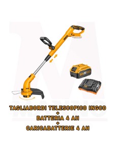 Il tagliabordi telescopico a batteria 20 V Ingco CGTLI20018 è un attrezzo di finitura da giardino utilizzabile dal professionista o dall'amante del fai da te. In questa offerta viene spedito con una batteria da 4 ah e un carica batterie da 4 ah.