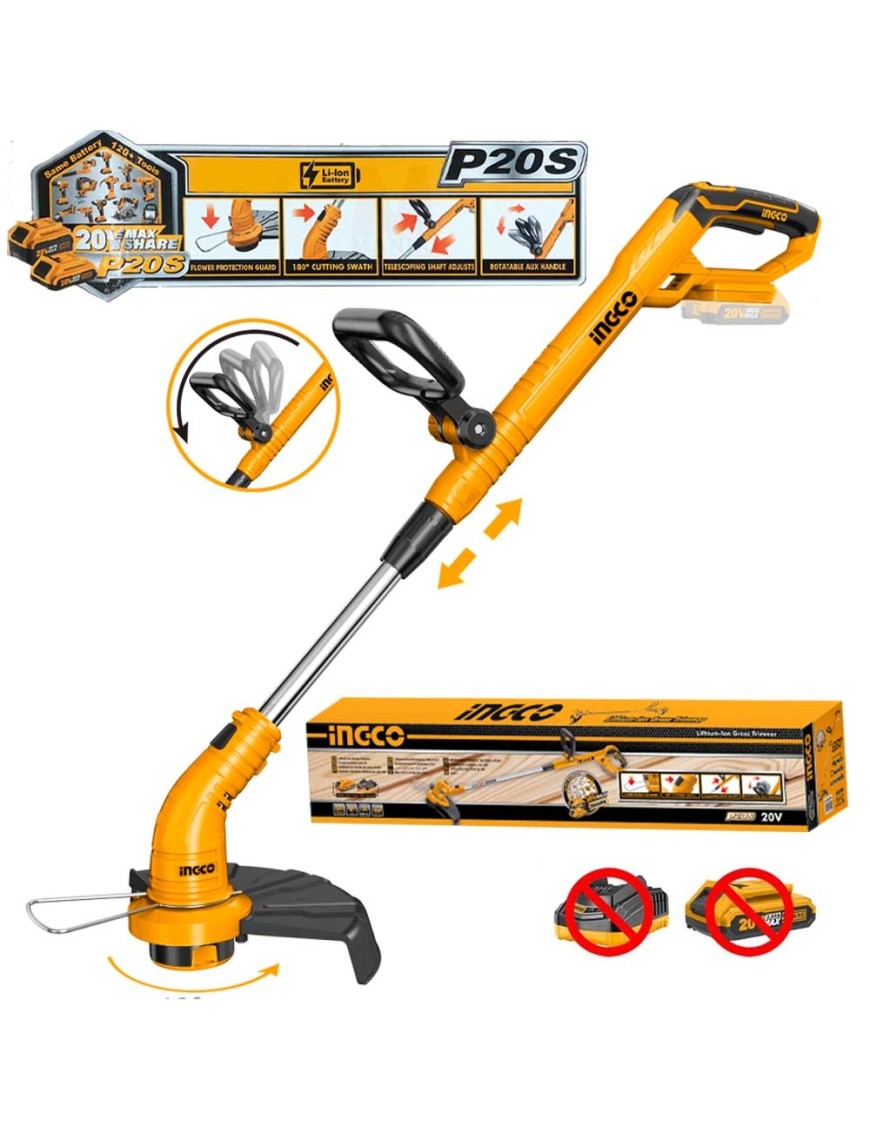 Il tagliabordi telescopico a batteria 20 V Ingco CGTLI20018 è un attrezzo di finitura da giardino utilizzabile dal professionista o dall'amante del fai da te. In questa offerta viene spedito senza batterie e carica batterie.