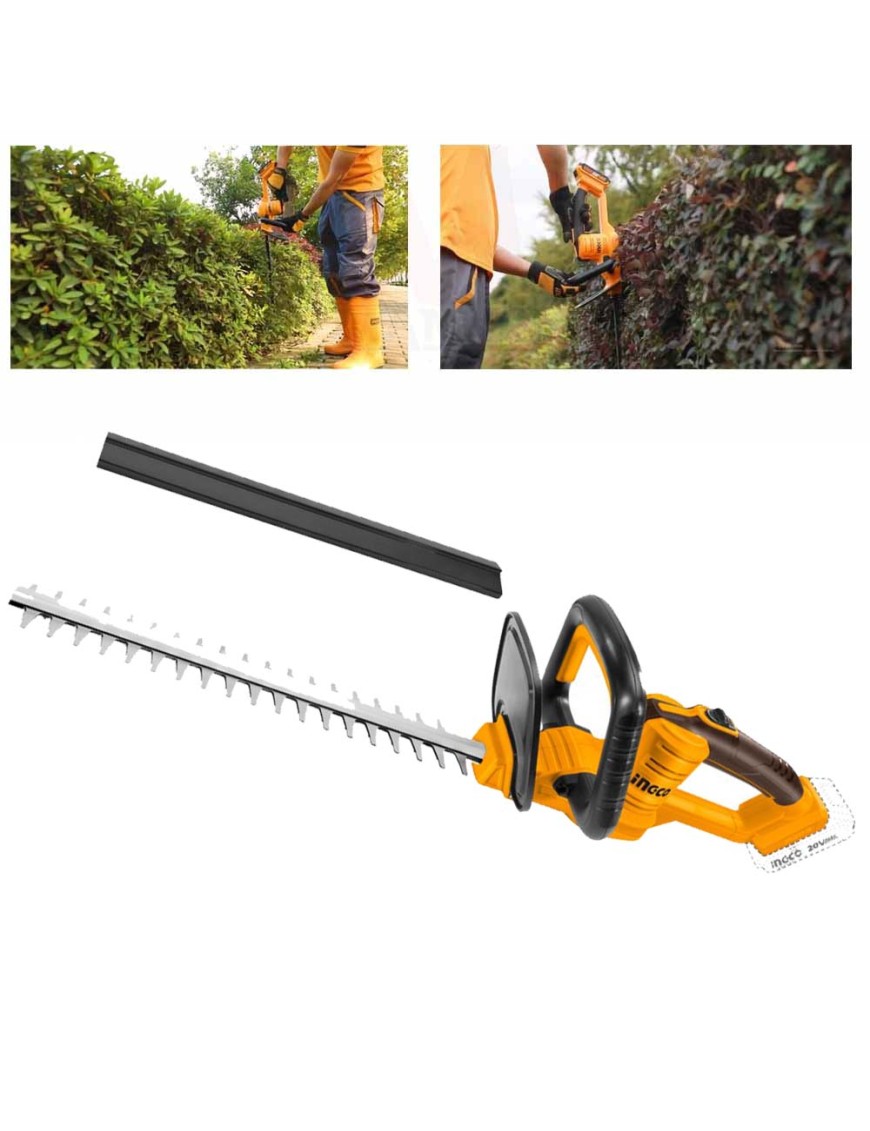 Tagliasiepi professionale Ingco CHTLI20018 a batteria 20 V con lama 45 cm perfetto per regolare aiuole, siepi e cespugli. Offerta che non comprende caricabatterie e batterie, acquistabili a parte o trovando l'offerta corrispondente nel nostro negozio.