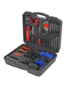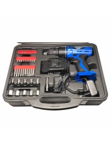 Trapano avvitatore Ribimex 12 V PRLPV120KIT fornito in valigetta e con 77 accessori tra cui inserti, punte, flessometro, cutter, chiavi, cacciaviti e molto altro.