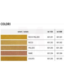 Vernice all'acqua, pigmentata con bronzo in polvere, nelle diverse tonalità.